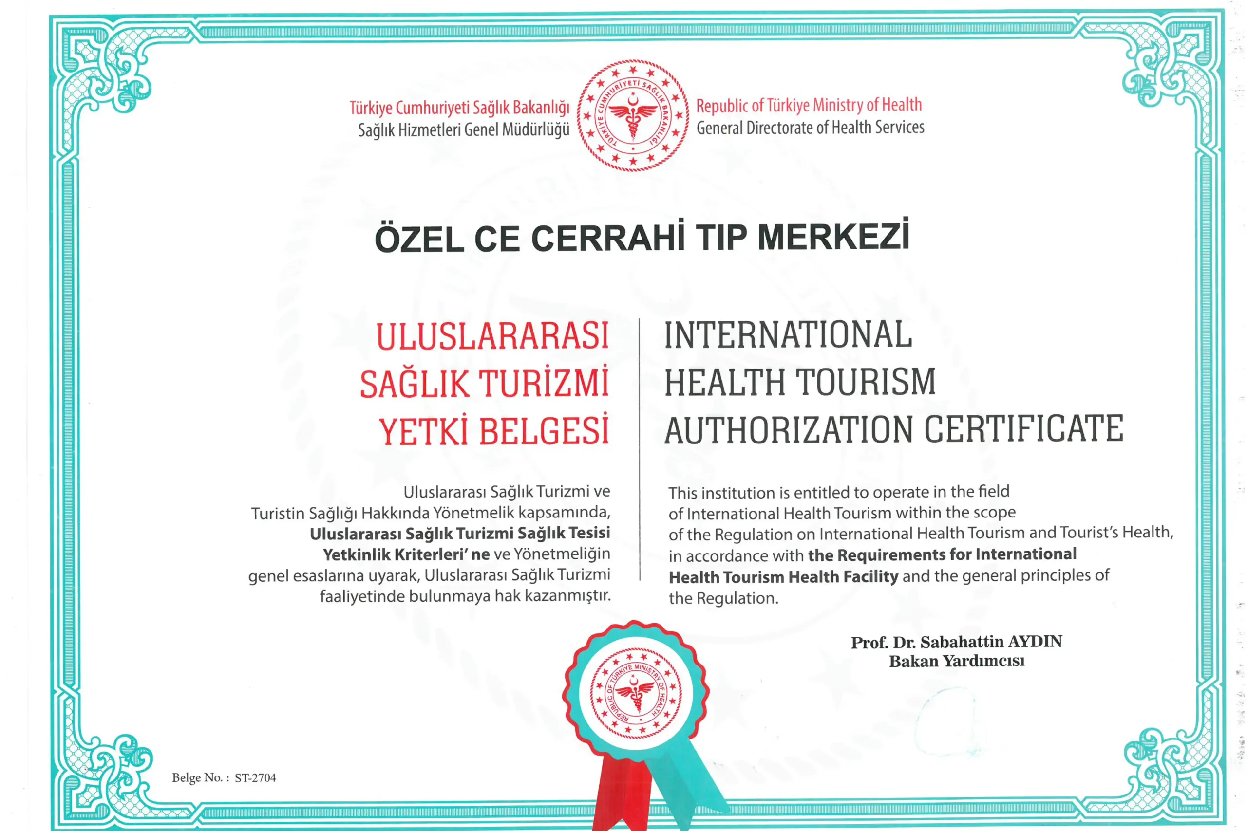 Certificato di Autorizzazione al Turismo Medico